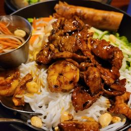 Pho May is my closest late night pho spot from home. Pho is flavorful, meat tender, and generous portions of noodles. Egg rolls were great (though the serving of lettuce to wrap could have been larger), chicken wings were fresh and crispy, and the spicy shrimp were delicious. Service is always quick and efficient. You can place your order online and pay as well. We did notice that the serving of beansprouts and basil was quite small so had to order more. Look no further for a reliable pho place.