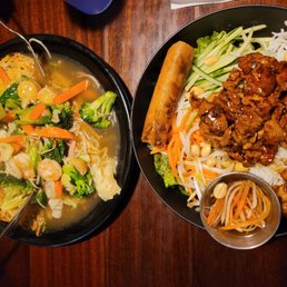 Pho May is a Vietnamese soup restaurant located at 12140 Carson St Ste E in Hawaiian Gardens, CA. This spot offers a variety of dishes including noodle soups, rice entrees, noodle entrees, salads, and refreshing drinks. They provide options for reservations, delivery, and takeout, making it convenient for customers. In addition, Pho May caters to various dietary restrictions with vegan and vegetarian options available.
